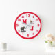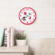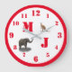 O design Monogramado de Animais Fofos apresenta monograma em letras grandes e claras. Os números do relógio são exibidos em impressão fácil de ler, os 12, 3, 6 e 9 ligeiramente maiores que o restante dos números. Imagem de um elefante amigável e um canguru curioso são exibidos contra um fundo branco. Todo o design é circundado por um anel marrom. Disponível em uma variedade de cores.