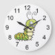 Uma lagarta fofa adorna este relógio. Isso ficaria fantástico em qualquer parede. Escolha entre várias formas e tamanhos.