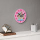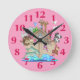 Relógio de Parede de Arca de Noah com fundo rosa. Um presente de chá de fraldas excelente para a mãe de uma menina recém-nascida.