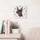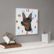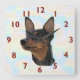 Uma pintura digital de um Pinscher Miniatura Perky a partir de uma fotografia de Diane Blackman. O fundo é uma espiral de cores pastel em um padrão mosaico.