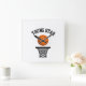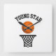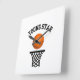 Relógio de parede com inscrição de jovem estrela de basquetebol e aro.