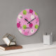 A bolinhas de negrito empunhou um relógio de parede redondo com cores sorventes brilhantes a rosa. Edite o nome opcional ou outro texto no editor fácil do Zazzle. Petfect para qualquer quarto de menina. Criado em parte com arte de resaleclipart.com r.
