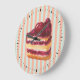 Design de retrô divertido apresenta uma fatia de aquarela de bolo de camada de cereja sobre fundo listrado