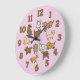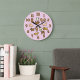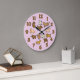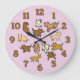 Belo relógio de parede lavanda para amantes de cães. Esse acessório divertido para casa é decorado com várias ilustrações caprichosas de desenho animado de cães. O design inclui numerais grandes e negritos para cada hora. Ótimo presente de casa nova para uma família que ama cães ou um dono de cães.