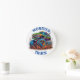 Relógio de Parede de Caminhão Monstro. Um vibrante caminhão monstro dirigindo pela lama em um estilo de caricatura de desenho animado, apresentando expressões exageradas e divertidas, ilustração digital com cores ousadas e detalhes caprichosos, inspirado em desenhos clássicos dos anos 80