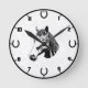 Um relógio de parede incomum para cavaleiros. Isto seria excelente como um relógio de cozinha ou num celeiro convertido perto dos estábulos.