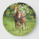 Um cavalo único com um relógio decorativo de parede. Um excelente adicional em qualquer casa. Também faz uma ideia de presente de excelente.