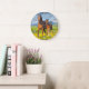 Um cavalo único com um relógio decorativo de parede. Um excelente adicional em qualquer casa. Também faz uma ideia de presente de excelente.