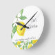 Personalize este relógio de parede de limão cítrico em estilo country com seu nome e mensagem preferidos. Este relógio de cozinha amarelo e branco alegre faria um presente de aniversário ou mudança de casa atencioso para ela. Ele apresenta um design brilhante e convidativo perfeito para adicionar um toque de calor e personalidade a qualquer cozinha ou casa.
