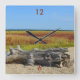 Este relógio de parede apresenta madeira derivada e um pântano de água salgada muito colorido na praia de Hammonasset em Madison, Connecticut. As plantas vermelhas suculentas no pântano são surpreendentemente bonitas no final do verão e no início do outono.