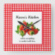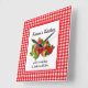 Este relógio de parede seria um presente atencioso para aquela pessoa especial que adora cozinhar. Este relógio apresenta um design de morango em estilo country que seria perfeito para sua cozinha rústica. Mostrado com um fundo de gingham vermelho, o centro tem um monte de morangos e uma área para o seu texto.