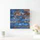 Este relógio de parede apresenta madeira azul pintada falsa.