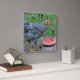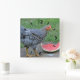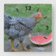 Este relógio de parede mostra uma das nossas galinhas de rock barrado que adora melancia! Excelente para amantes de frango!