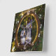 O relógio de parede com uma bela mão entalhada por um ornamento de natividade de madeira pendura em uma árvore em Silver Dollar City, em Branson Missouri, Estados Unidos. Procurando mais impressões ou produtos? Sinta-se livre para visitar minha loja: http://www.zazzle.com/timelessmomentsphtgy Esta foto foi tirada por Jennifer White com Fotografia Moments Eterno. Todas as imagens são protegidas por copyright © Moments Eterno Photoographic.