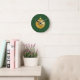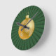 Trendy and na moda Starburst Stripes Ornament Holiday Wall Clock com um starburst dinâmico em verde escuro e Enfeites de natal adornado com flocos de neve em ouro. Fácil de personalizar, simplesmente personalize com o texto de sua escolha. Clique no botão "Personalizar a TI" para obter mais opções de personalização.