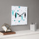 Este Reltro Turquesa Diamantes e Starbursts Acrylic Wall Clock é uma nova tomada no estilo de vintage. Apresenta estereótipos de cozinha e pretos em bolinhas de turquesa, em forma geométrica circundante, turquesa e diamante preto. Personalize a cor de fundo neste produto moderno de meio século se você estiver se sentindo ousado ou o deixe branco se subjugado for mais o seu estilo. Vocês certamente gostarão da nossa homenagem aos anos 50. Comprar isso hoje e seja o gato mais legal do seu quarteirão.
