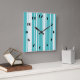 Relógio de Parede Personalizado com um padrão de listras brancas e turquesa e uma face do relógio de fontes da Broadway.