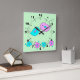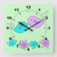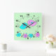 Pássaros tensos e flores fazem este relógio de parede tão bonito para decorar a sala das crianças. você pode mudar a cor do fundo tão bem quanto quiser.