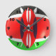 Bandeira do relógio da parede do Quênia design. Você pode personalizar este relógio de parede com qualquer texto de sua escolha. Se precisar de ajuda para personalizar, entre em contato conosco através do link da mensagem nesta página, o relógio do sinalizador Queniano.