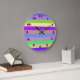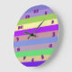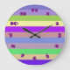 Sombras de púrpura intercaladas com faixas verdes tornam este relógio de parede único! Este relógio faria um presente de casamento de excelente ou de higiene doméstica ou de boatwarming (ou aquecimento de casa). Disponível em dois tamanhos de relógio redondo, ou um relógio quadrado. Copyright Scarebaby Design.