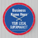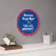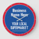 Relógio de Parede para Loja de Aldeia, Supermercado Local, Loja de Conveniência ou Mercearia Local. Edite o design para alterar o texto conforme necessário. Cores Azul e Vermelho.