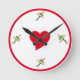 Relógios decorativos de paredes redondas para salas de estar, quartos, jardins ou onde quer que os queiram colocar - que irão ajustado em quase qualquer decoração em quase qualquer sala. O relógio tem um monte de flores às 3 horas, 6 horas e 9 horas com um coração vermelho curvo bem no meio. Os relógios de parede quadrados também estão disponíveis.