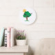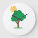 Relógio de parede com ilustração de árvore e sol, adequado para quartos de crianças.