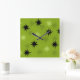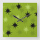 Este Relógio de Parede da Praça de Starbursts Verdes Atômicos tem toda a diversão moderna de meio século da cozinha da sua avó, menos o linóleo pegajoso. O kitschy design apresenta um fundo verde com manchas douradas e rastos estrelados colocados aleatoriamente em preto, e dois tons de verde. Este padrão inspirado na safra é mod o suficiente para ser na moda e retrô o suficiente para ser clássico. Sirva algum amor com esta design minimalista.