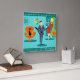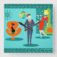 Querida, estou em casa! Este Casal de Cartoon da Idade do Espaço Retroativa vai ter inveja do casal de cartoon em um relógio de parede! O design apresenta um fundo turquesa com tijolos lacrimogêneos e uma lareira de cone verde-oliva. Um gato preto e elegante está sentado numa cadeira laranja elegante. Há um relógio de parede lacrimogêneo e uma lâmpada pendente de dois níveis em tons de amarelo, azul e preto. Na frente e no centro, há um distinto empresário martini a nadar num terno azul e gravata laranja. Ao seu lado, a sua loira bomba de uma esposa troféu está a vestir um vestido vermelho de bruxa e a segurar uma bandeja de martinis. Va-va-va-voom!