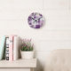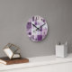 Um relógio de parede moderno com um padrão de azulejo com um sutil efeito de aquarela em cores mauve, púrpura e lilás. Os números são um arquivo separado e podem ser excluídos se você não precisar deles. E você também pode personalizar ou excluir o texto do monograma.