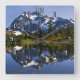 Este relógio de parede quadrado apresenta uma bela imagem do Monte Shuksan refletida no Picture Lake.