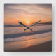 Um belo relógio de parede inspirado no oceano com tons quentes de pôr do sol e ondas moles. Perfeito para interiores costeiros e de praia