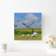 Este relógio de parede apresenta esculturas de conchas marítimas no centro da natureza na praia de Hammonasset, em Madison, Connecticut.