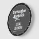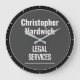 Relógio de Parede Profissional para uma empresa de Serviços Jurídicos. Cor preta, cinza e branca. Edite a design para alterar o texto de acordo com o destinatário.