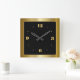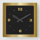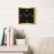 Uma moldura de folha de ouro falso com uma face preta torna este relógio bastante dramático. Com numerais para combinar, este relógio quadrado faria um ótimo presente para uma ocasião especial, como um aniversário de casamento dourado. Personalize para adicionar nomes e datas. Disponível apenas em formato quadrado.