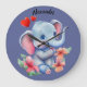 Esta ilustração adorável do Baby Elephant Wall Clock num fundo azul rodeado por flores e corações fará uma bela adição a qualquer quarto de creche ou criança. Irá adicionar um toque de alegria e beleza a qualquer sala onde você a colocar. Então, por que se conformar com um relógio simples e chato quando você pode ter um que é funcional e giro? Pegue seu relógio de parede de elefantes hoje!