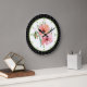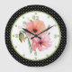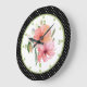 Bonito relógio de bolinhas preto e branco, com círculo verde e branco, no meio, com lindas flores pintadas de aquarela. Marcas verdes de hora, corram ao redor da borda do círculo branco. Personalize para adicionar seu próprio texto ao relógio adorável.
