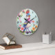 Relógio de Parede Floral Pássaro Rosa Azul Fofo