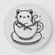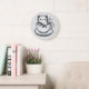 Adicione charme e personalidade ao seu espaço com este adorável relógio de parede de gato em uma xícara de chá. Com um gatinho doce e desenhado à mão aninhado dentro de uma xícara aconchegante, esta ilustração em preto e branco combina um capricho lúdico com um design minimalista limpo.
