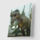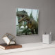 Um relógio de parede com uma foto de dinossauro giganotossauro. Fotografia por © KexesKreations.