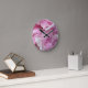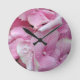 Este relógio apresenta uma imagem de hífenes muito cor-de-rosa para adicionar um olhar fresco e floral ao seu decoro doméstico.