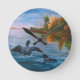 De uma pintura de óleo original de Brenda Thour de dois leões em um lago ao pôr do sol com um luo batendo suas asas. Copyright de Brenda Thour 2004.