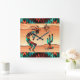 Este é um único "Um dos tipos" Relógio de Parede do Sudoeste da Praça Kokopelli! Ele apresenta um Kokopelli tocando a flauta debaixo do sol e dançando em volta de um cacto em um fundo do deserto.. cercado por uma borda sudoeste em Turquesa, Laranja e Negro!