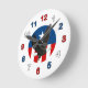 Este relógio é decorado com uma águia-baleeira americana, uma bandeira de estrela solitária e uma face vermelha, branca e azul. Um relógio de cozinha brilhante e patriótico. Uma maravilhosa ideia de presente.