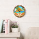 Está querendo mudar os relógios? Este divertido design de relógio tropical com cadeiras de praia, guarda-chuva, mesa, palmeiras, e coquetéis na praia deveriam fazer o truque. Comprar para você mesmo, ou dê à família e amigos um presente divertido e eterno.