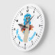 Um relógio branco redondo de parede acrílica para sua casa, com marcas e números pretos e com uma coruja azul. Personalize-o com o nome do professor. © ArianeC Ilustrações — Todos os direitos reservados