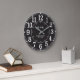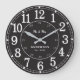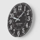 Elegante relógio de parede preto com números grandes e negritos, horário de 24 horas e texto personalizável para o nome da sua família e data especial. Um item atemporal e presente perfeito para casamentos, aniversários ou para aquecer a casa.