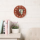 Relógio de parede personalizado feito para promover um abrigo de cães e inspirar o resgate de cães. O design inclui uma ilustração de um cão fofo e números de hora grandes e em negrito. Apresenta a frase "Salve uma vida. Adote um cão de abrigo!". Exiba-o em um abrigo real ou em qualquer outro espaço, como uma sala de espera, para promover um abrigo de cães e como inspiração.