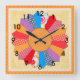Um relógio colorido brilhante e padronizado, com ousadia, fácil de ver números negros. Projetado em um padrão circular tradicional de blocos de colcha circular de "Prata Dresden", ricamente estratificado com matizes roxos e laranja. Veja muitos outros relógios temáticos nesta coleção no Clock O Rama no Zazzle.