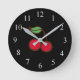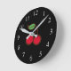 Este relógio retrô divertido apresenta cerejas vermelhas brilhantes. O design é da arte original.